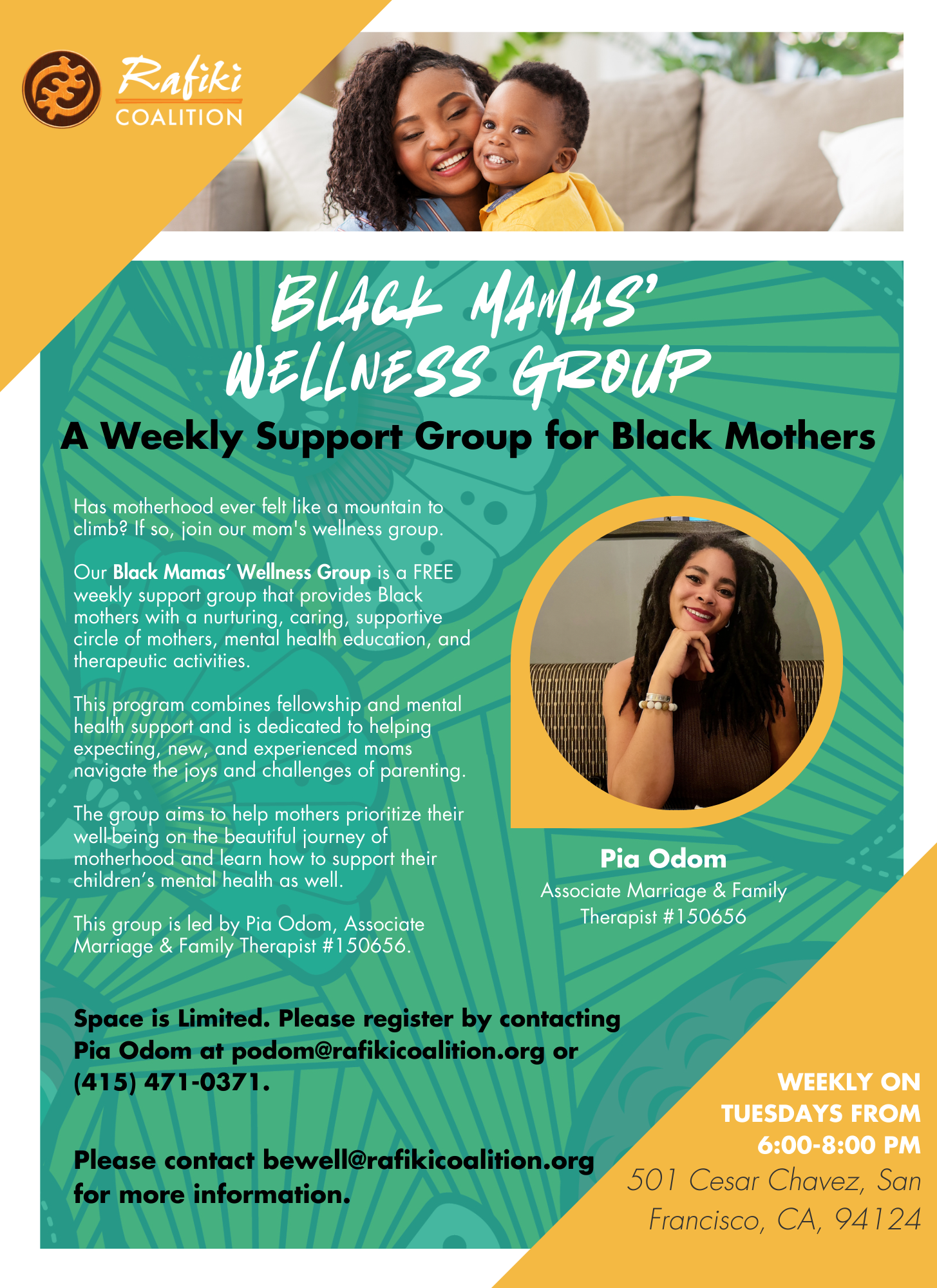 Space is Limited. Please register by contacting Pia Odom at podom@rafikicoalition.org or (415) 471-0371.